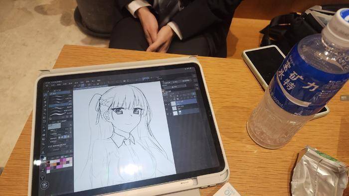 更多玩家在一旁的咖啡站休憩、交流,或者专注地做着自己的事——我观察了一位玩家很久,他正埋头绘画,细细勾勒着一位角色的发丝,身边的空气似乎都安静了。犹豫半天,我终于出声打断他:“这画的是谁?”