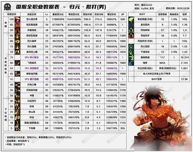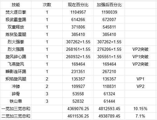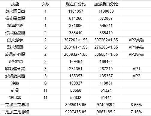 炽焰旋风腿和飞燕旋风本次都没有得到加强,且炽焰旋风腿绑定VP2,多余点飞燕旋风就好