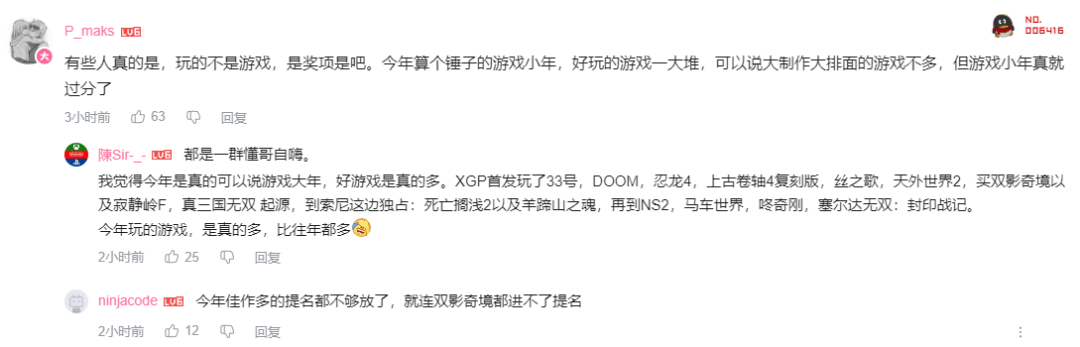 而今年,争议来得比往年要更早一些,且多数争议都集中在年度最佳游戏提名上,特别是围绕今年是“游戏大年”还是“游戏小年”的讨论,海内外玩家态度激烈,看法不一。