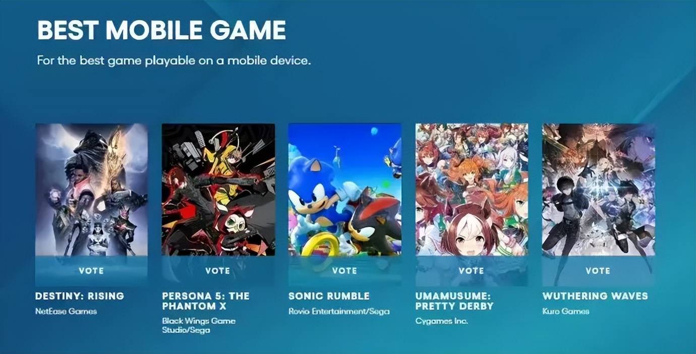 另外,在“最佳移动游戏”奖项的提名中,包括了库洛游戏的《鸣潮》、网易游戏的《命运:群星》以及完美世界的《女神异闻录5:夜幕魅影》。颁奖典礼将于北京时间12月12日上午举行,届时我们将知道所有奖项的最终归属。