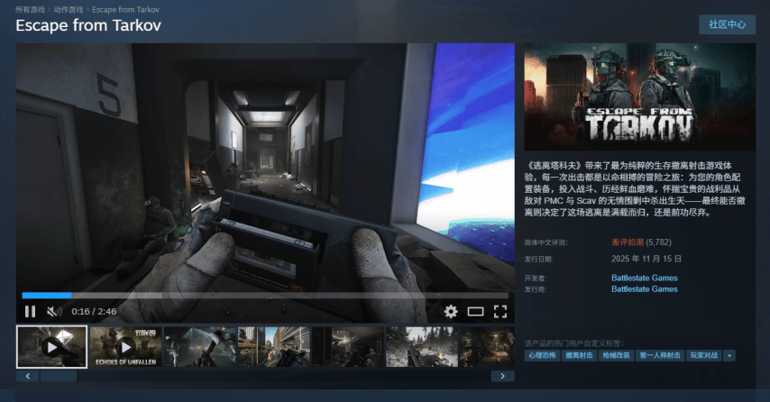 虽然游戏总体评价已经惨不忍睹,但中国玩家对《逃离塔科夫》的要求显然更为严格。根据数据统计,该游戏的简体中文版好评率仅有可怜的个位数,远低于平均水平。