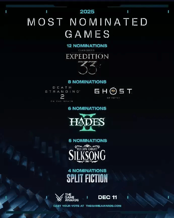 作为游戏界的“奥斯卡”,The Game Awards(TGA)2025年度各大奖项的入围名单终于在11月18日凌晨正式揭晓。