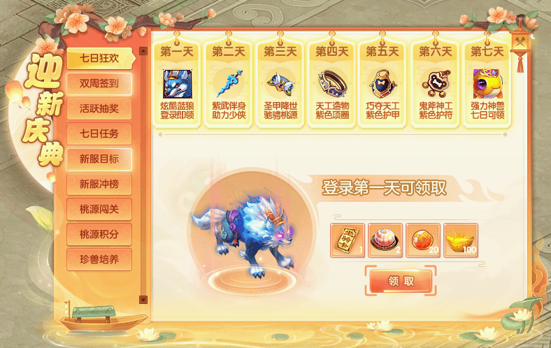 说说这开服福利,简直多到让人眼花缭乱!组队加入结缘小队,完成每日任务,高级兽诀说不定就到手了。新服专享的“迎新庆典”,7日登录+14日签到,酷炫坐骑蓝狼、50级极品紫装、紫色灵兽装备、海量金票……统统免费送!