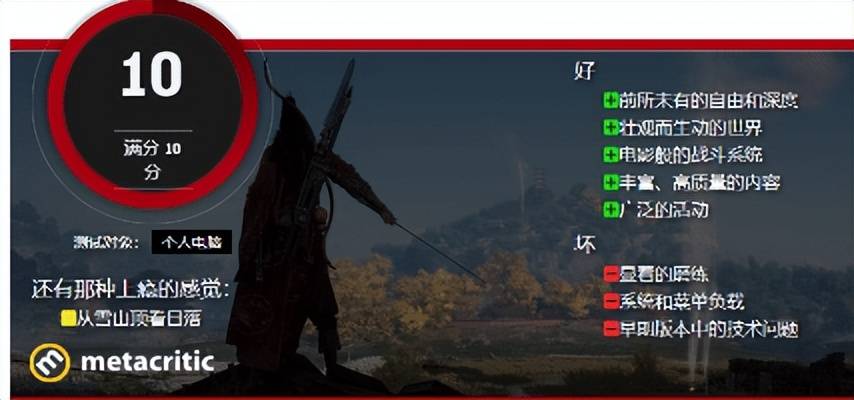 外媒直接给出了满分10分的超高评价,称赞其为“极具野心且令人震撼的作品”,认为游戏展现出了在未来数年成为标杆级作品的潜质。