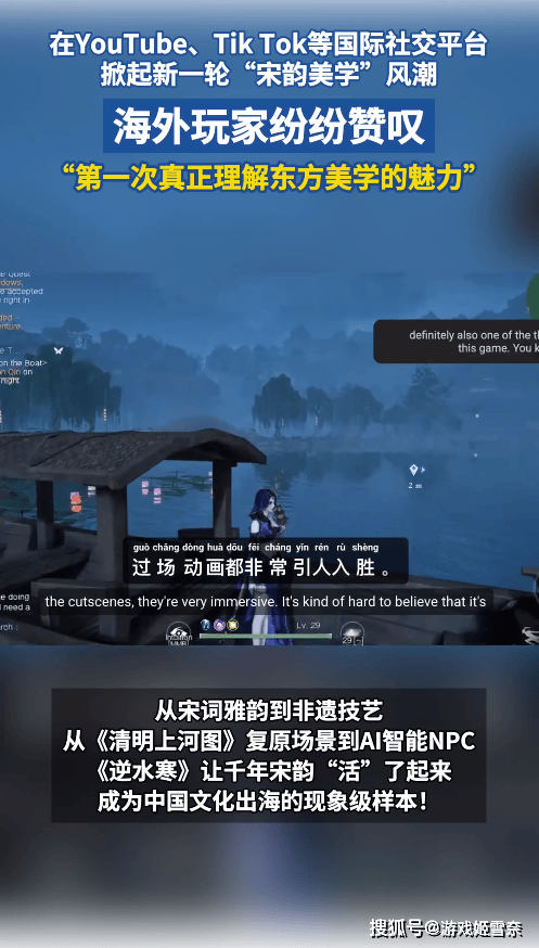 许多国外玩家在体验过这款游戏后,都被游戏内展现的宋词雅韵、非遗技艺等元素深深震撼,特别是在《逆水寒》手游最前沿的AI技术加持下,游戏中蕴含的千年文化元素生动呈现,让众多海外玩家成功感受到了中华传统文化的独特魅力。