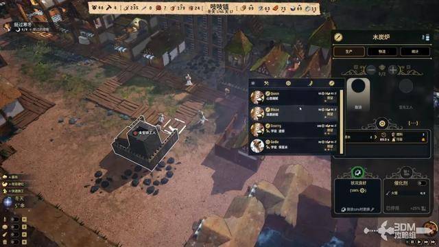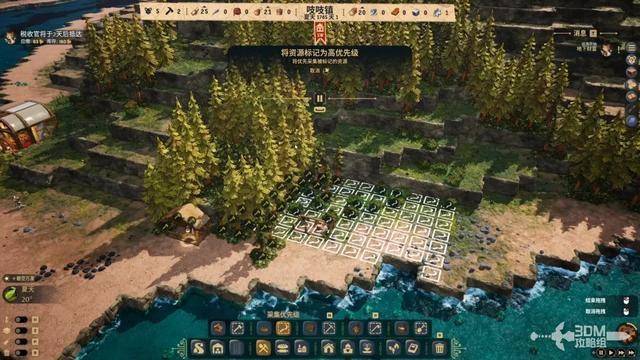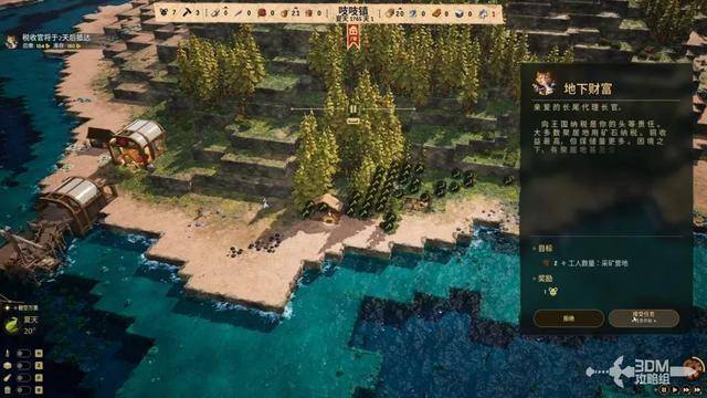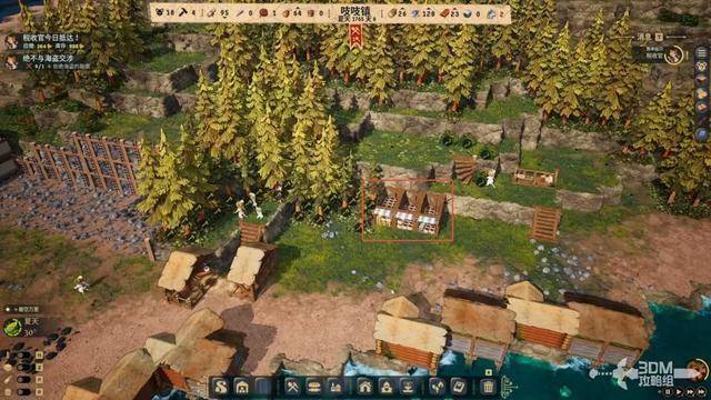 第一天没有石材资源,无法修建简单的石头住所(使用原木建造房子资源不够),可以安排两个矿工营地,一个开采矿石资源(用于两天后的收税)然后规划一下之后的发展方向,平整一下土地顺便还能收集石头资源。