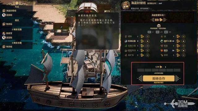 任务绝不与海盗交涉,有时候海盗会登岛,索要赎金,点击拒绝勒索会受到海盗的供给。