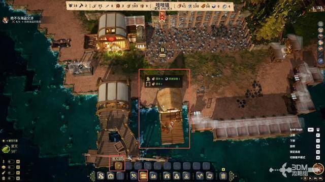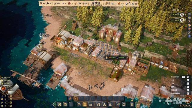 修建码头和仓库要选好地理位置,选择比较平坦的地方,然后周围有矿石的地方,还要有树木资源。