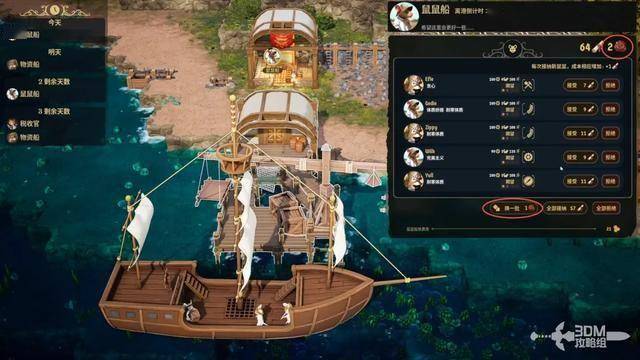 稍稍等一会儿,下一艘鼠鼠船来了,此时我们没有足够的政策支持点数,只能拿去两只鼠鼠,前期推荐选择矿工工会和探险家工会的鼠鼠用于资源开采。