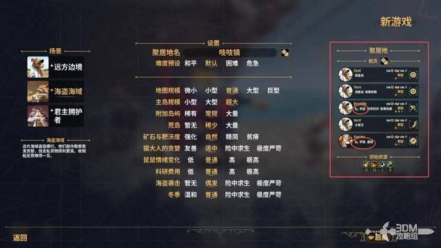 中间的设置基本不怎么么需要更改,按照个人喜好调整即可,推荐将主岛规模调整的稍大一点。