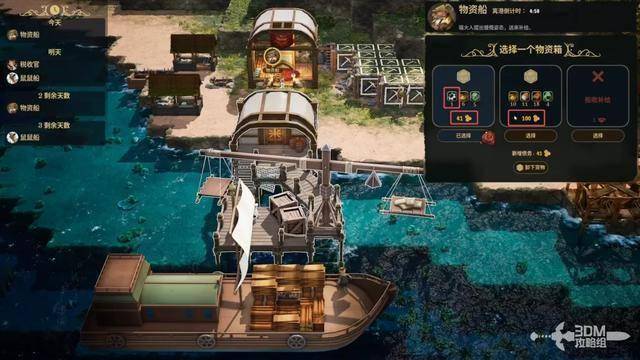 每隔几天还会有物资船上岛,前期选择有机械设备的物资箱,每个物资箱有不同的价格,税收官会收取额外的税。