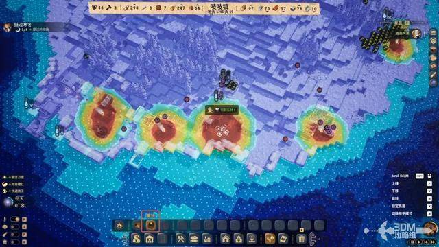 在此期间可以简单熟悉一每个快捷键的作用,例如H可以查看温度,按Z可以进入刨面图,按P查看污染指数(前期暂时用不到),按B拆除建筑,按MN快速规划采集区域,按C复制建筑。