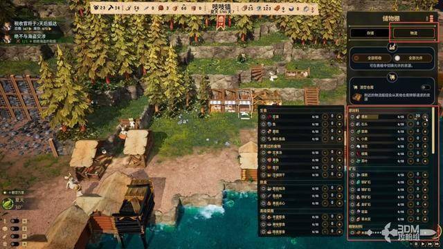 仓库的设置页面里,可以将附近发展所需的资源加到物流里,这样修建新仓库附近的设施时就可以就近取材。