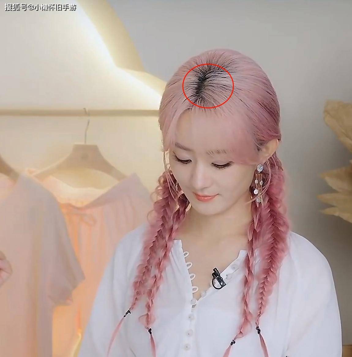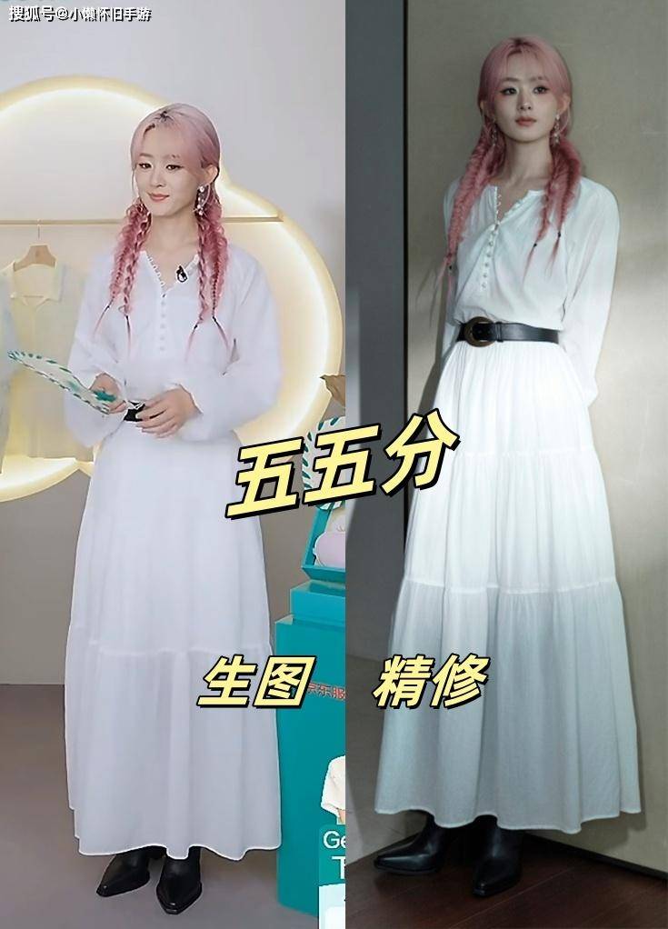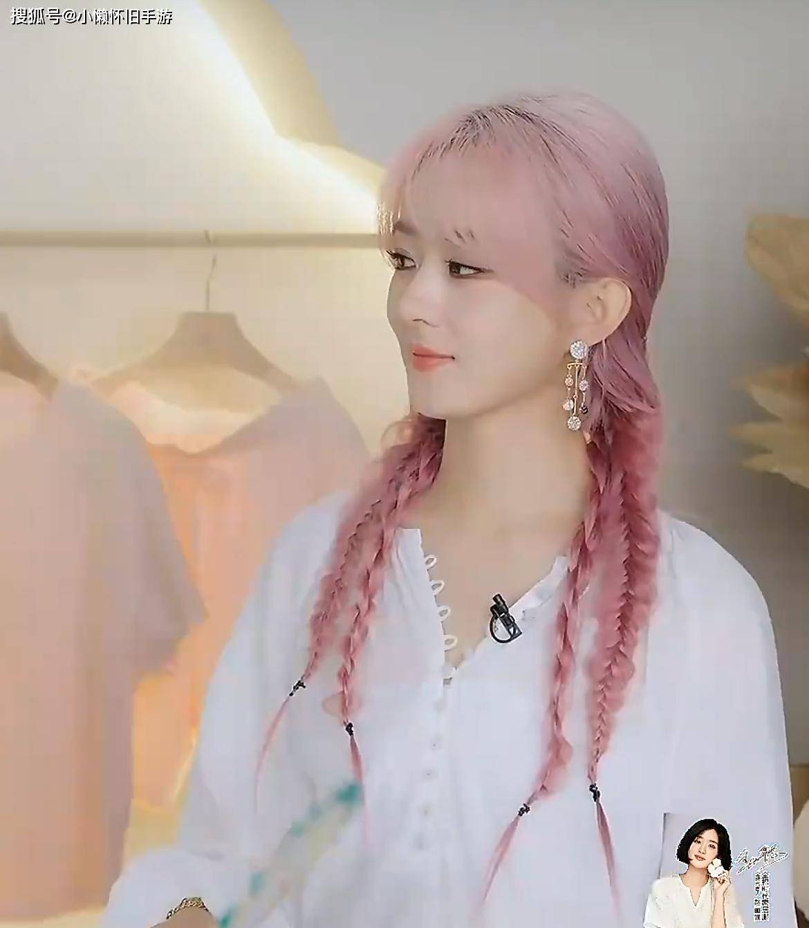 赵丽颖穿着白色裙子出现在直播间里,黑色的腰带突出了她的身材曲线,还戴了一个双马尾的假发,看起来像是麻花辫的样子。无论是发型还是服装、配饰,她都展现了一种甜美又带点酷的感觉。不过,赵丽颖本来就是黑发,假发的粉红色比她自己头发的粉红色要更深一些,所以颜色上的差异显得比较明显。