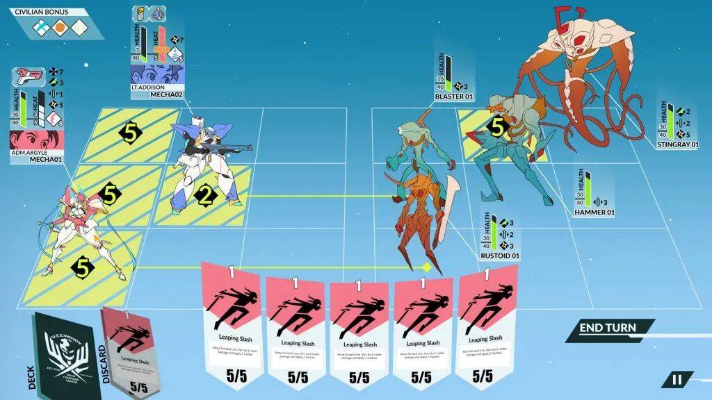 汤姆:《Battle Suit Aces》最初其实是一款六边形网格战术游戏,所以我们做了大量原型测试!我们一直希望打造一个简洁的系统,但花了很长时间才确定能量机制、选牌规则以及卡牌的实际意义。有一段时间,卡牌设定为少数机甲的专属武器,后来我们意识到每张卡牌都可以代表一名驾驶机甲的飞行员 —— 这是一个重大突破。围绕角色构建游戏的思路,我们觉得非常契合。对十几种不同的卡牌系统进行原型开发和玩法测试,大概花了一年时间!
