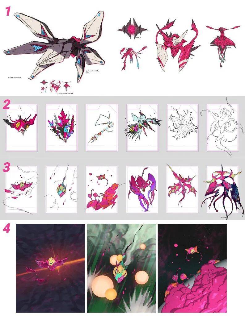 妙游社:游戏包含大量美术资源,我特别好奇:游戏中独特的机甲和外星敌人是如何设计的?能否展示从最初概念到最终游戏内资源的完整流程?