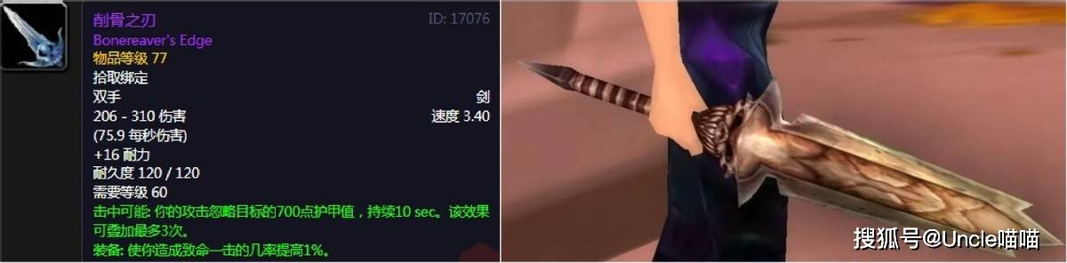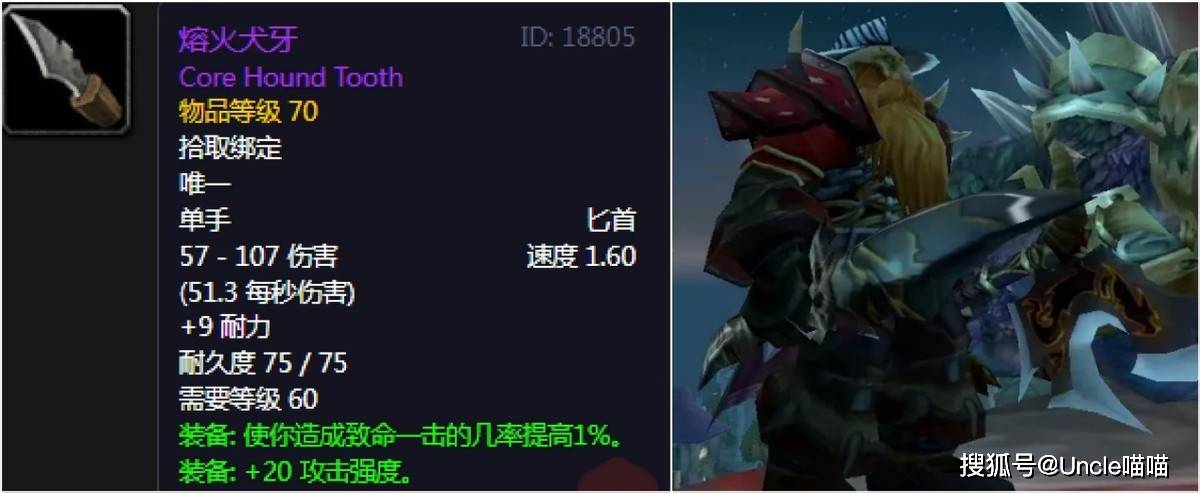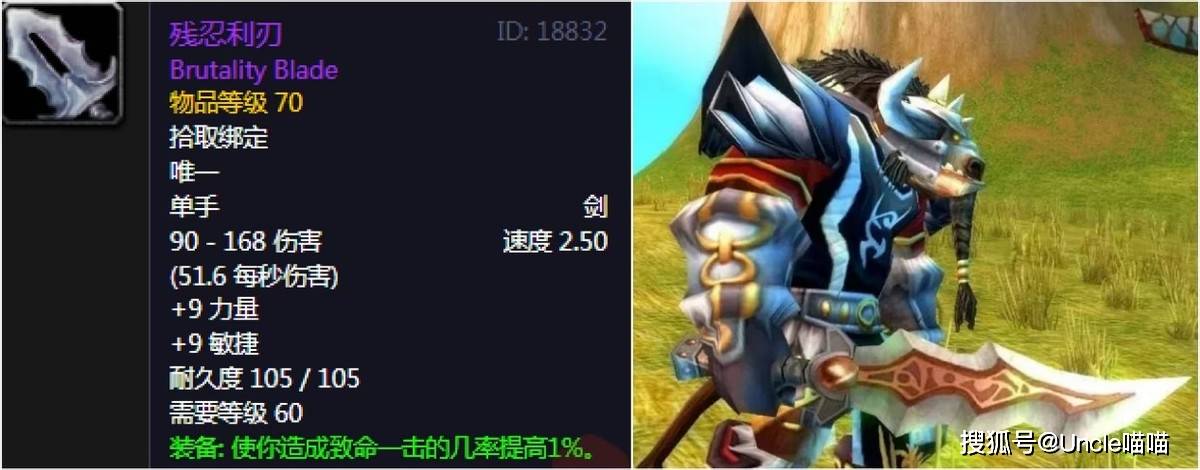 熔火之心加尔的这款单手剑残忍利刃,绝对是一把很容易被忽视的极品武器,属性力量和敏捷齐聚的着实不多见,而且基于2.5的攻速来说,主副手还是能够随心切换的,特别是人类种族拿了绝对恐怖如斯,喵叔100%推荐!