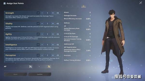 2、选择成振宇的标签页,然后你可以将技能点投入不同的属性。