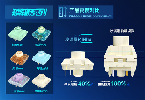 矮轴系列:凯华为适配不同玩家的操作习惯,研发了多种经典矮轴,像知系列 MINI 矮轴,不仅涵盖线性、有声段落等多种经典手感,还拥有 5000 万次的超长机械寿命 。全POM冰淇淋 MINI 矮轴,压力克数更轻,操作起来轻松省力,丝滑灵敏,无论办公码字还是游戏连招都能轻松拿捏!
