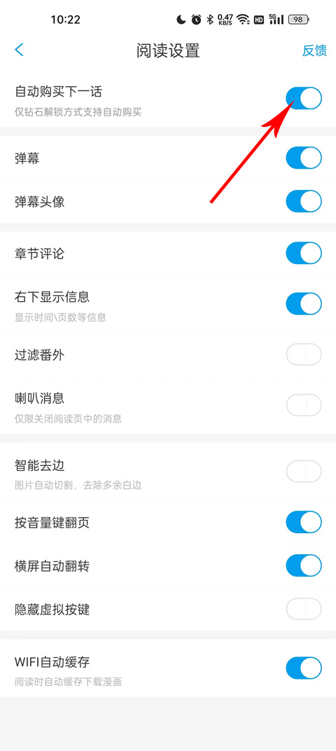 4、第四步:在阅读设置中,将自动购买下一话进行关闭,就可以取消自动续费功能了。