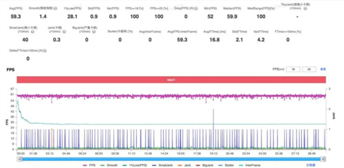半小时烽火地带平均 164.4 帧,功耗 4.3W。