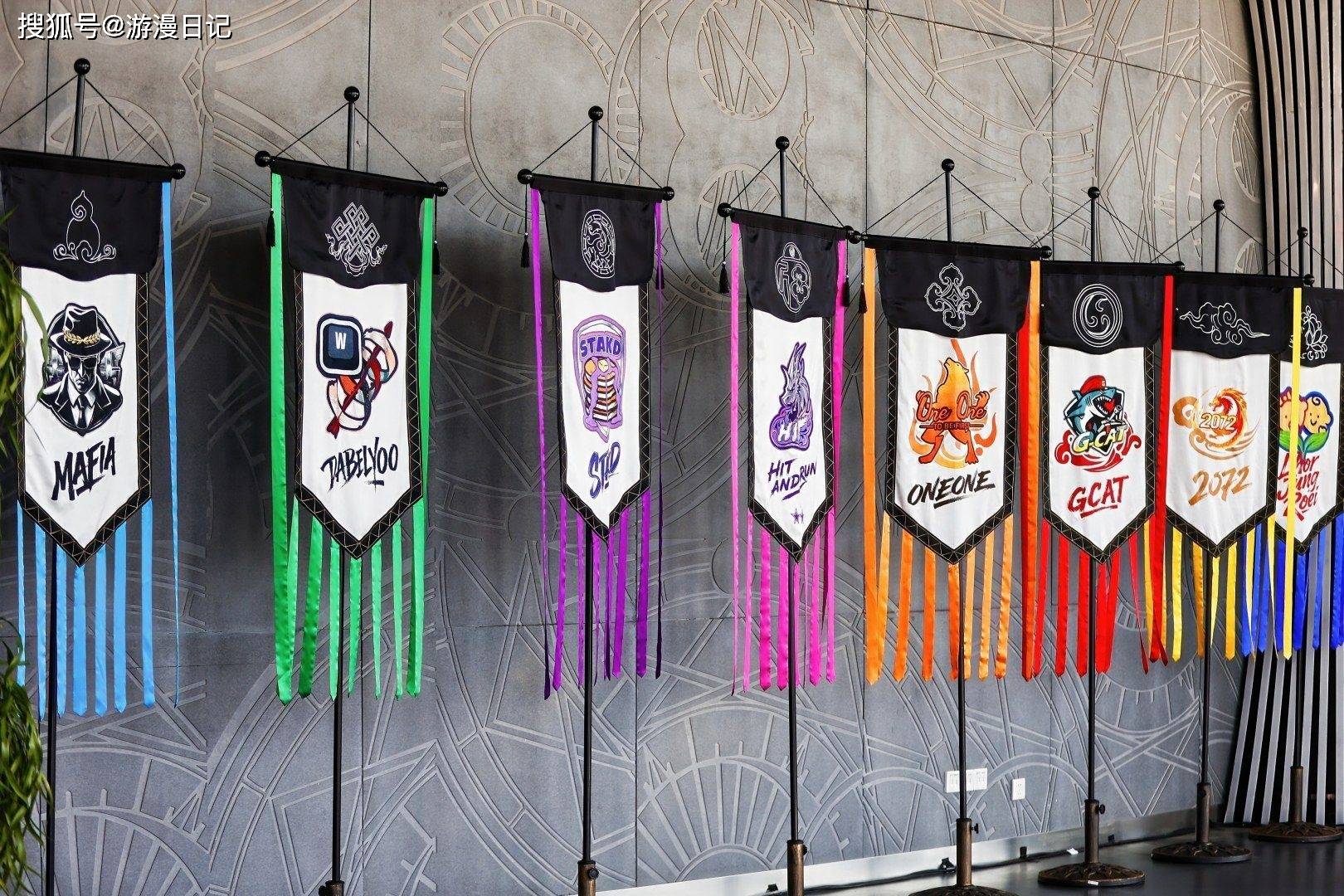 而最令人叹为观止的,莫过于飘扬在场馆内的战队战旗!这绝非普通的工艺品,每一面皆是由苏绣传承人张雪老师亲手绣制而成。每支队伍的LOGO凭借苏绣工艺得以细腻展现,不仅寄托了每支队伍的信念与期许,更以东方古国千年来的古典韵味,传递着对选手们的美好祝福。这些战旗既在视觉上保持了整齐利落之感,又能让观众一眼认出心仪的战队,堪称匠心与实用的完美融合!