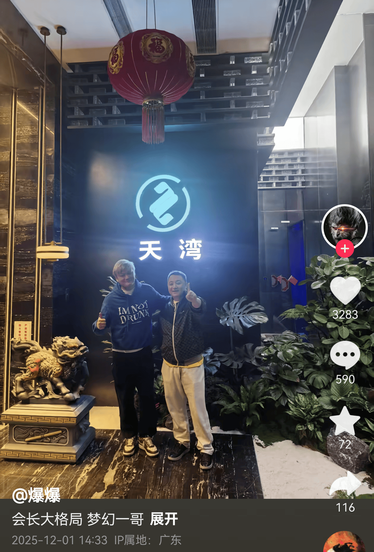 餐后,爆总热情邀请风少参观自己创立的传奇战队“天湾竞技”的起源地。在参观过程中,爆总对风少的格局与实力赞不绝口,直言他当为现役梦幻一哥!