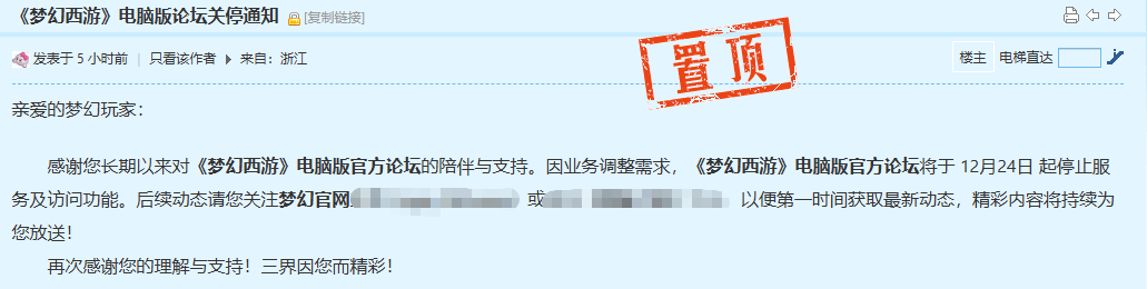 今日,《梦幻西游》电脑版官方论坛发布公告,称因业务调整需要,将于2025年12月24日起停止服务及访问功能。多年来,这里一直是大家交流心得、学习大神攻略、提升PK实力的重要场所。如今即将面临关闭,着实让人觉得惋惜。