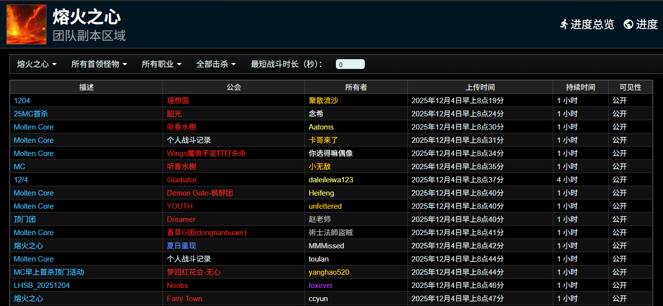 维护提前结束,《魔兽世界》“泰坦重铸”时光服首个团本MC(熔火之心)于12月4日上午7点多开放。跟普遍预测一致,时光服重做的MC(80级25人团本)难度极低,低于巫妖王时代的NAXX,几乎等于正式服的“时光漫游”,未来有发展成“眼神团”(不开YY)的趋势。在开服的不到一个小时内,多团已通关,其中一区部落公会<理想国>拿下首通,领先第二名仅5分钟。