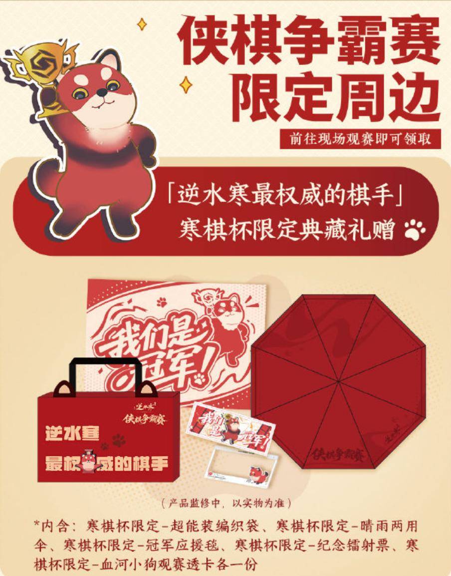 在2025年ChinaJoy展会上,血河小狗骑着鬼火摩托冲进展台的画面,成为年度名场面。如今,当《逆水寒》手游即将举行“逆水侠棋”线下决赛时,血河小狗再次成为了流量担当——联名雨伞、毛毯统统安排,玩家笑称:“我是为了这只狗才去应援的。”