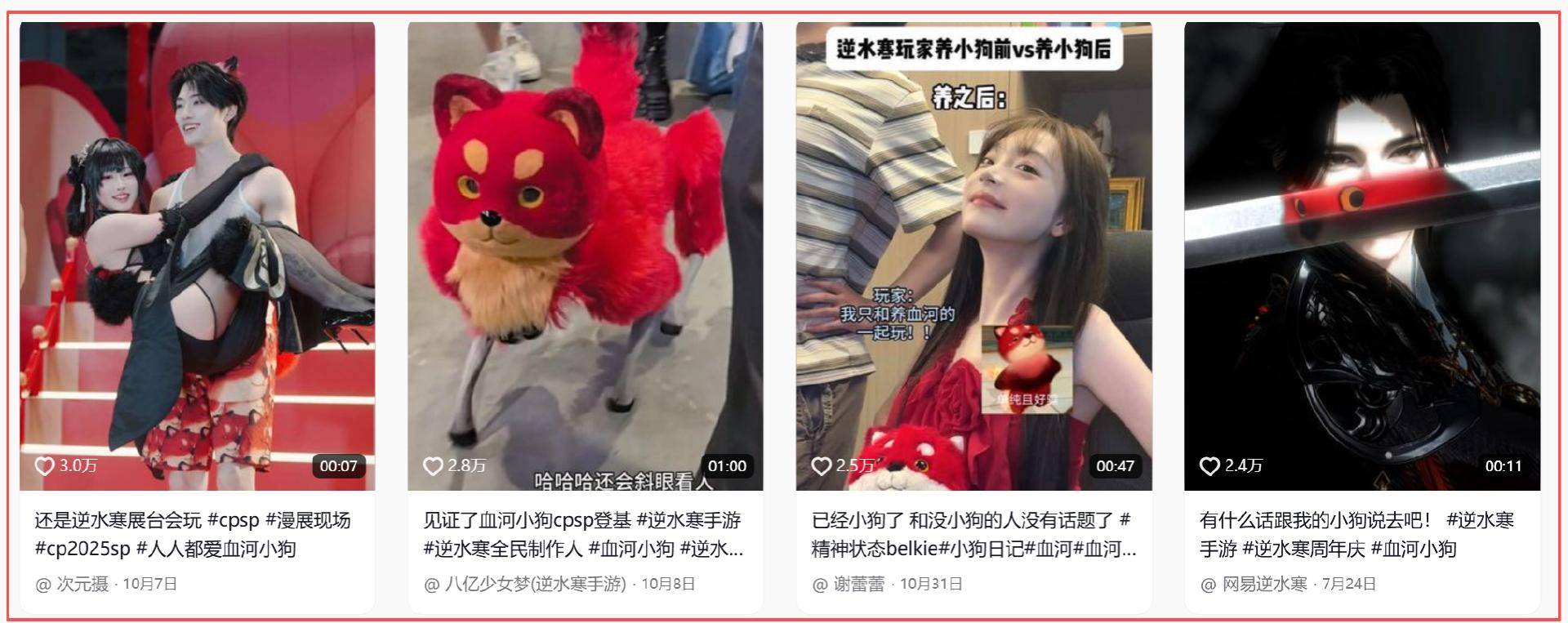 除了潮玩界,游戏圈也把这种“缺陷美学”与多巴胺营销玩到了极致。这就不得不提《逆水寒》手游里的血河狗,就是踩着这股浪潮出圈的“新晋顶流”。这只被玩家俗称“斜眼狗”的宠物,浑身通红,眼神永远透着睥睨天下的傲娇,明明是游戏里的战斗伙伴,却靠魔性颜值圈粉数百万00后。