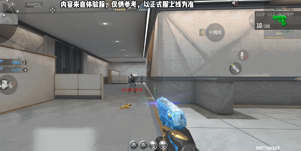 再来看实战中这款COP 357-冰川守护的表现。装备皮肤后,原本暗淡无光的COP瞬间被冰蓝色冰川包裹,整把枪械呈现出近乎透明的冰川质感,看上去非常纯净。