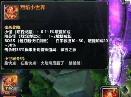 传统单塔地图“资源获取单一、成长没盼头”的问题,在《不思议作战》里也被解决。首先,杀敌数不只是换属性,还能绑定“宝物系统”——每次兑换都会刷新三个宝物选项,玩家能择优解锁更强效果;其次,激活宝物后还能进入“小世界”,比如“烈焰小世界”里杀BOSS能拿敏捷加成,额外获取属性奖励;再加上可自主锻造词条的“剑甲套装”,想要“白字敏捷+10”还是“攻击+100”全由玩家说了算。