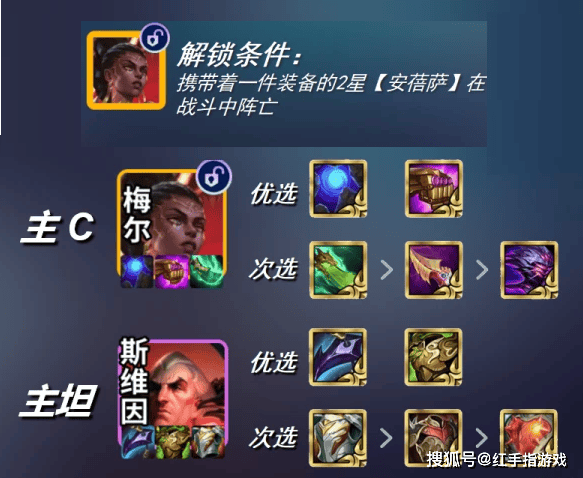 装备搭配:主C梅尔优选装备(蓝BUFF、帽子),次选(法爆、科技枪);主坦斯维因:优选装备(日炎、狂徒),次选(反甲、石像鬼)