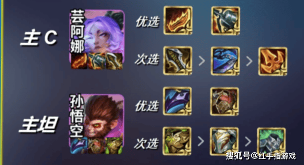 装备搭配:芸阿娜优选装备(法爆、帽子),次选(正义、破甲);孙悟空优选装备(日炎、狂徒),次选(反甲、石像鬼);
