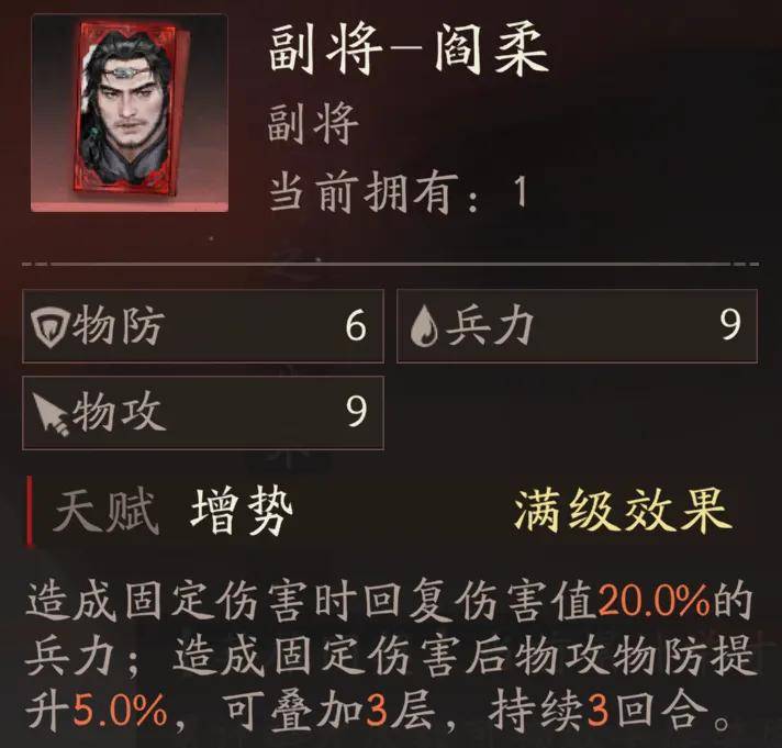 最后则是副将选择,目前维一的搭配是“阎柔”+“胡车儿”,其余例如夏侯昭、韩浩,包括黄色副将车胄、邢道荣等也可以纳入过渡的考虑范畴。