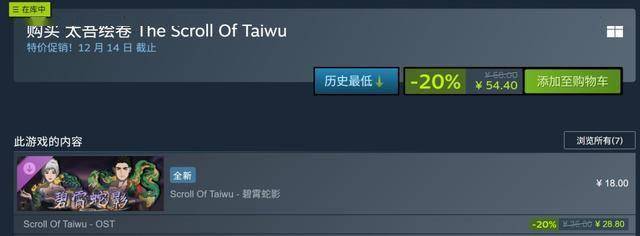《太吾绘卷》当前正在Steam上史低促销中,8折售价54.4元,特价促销截止到12月14日。