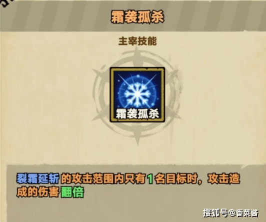 1、霜袭孤杀(对单伤害翻倍),套装效果再次翻一倍,打单体boss基本可以做到一刀秒。