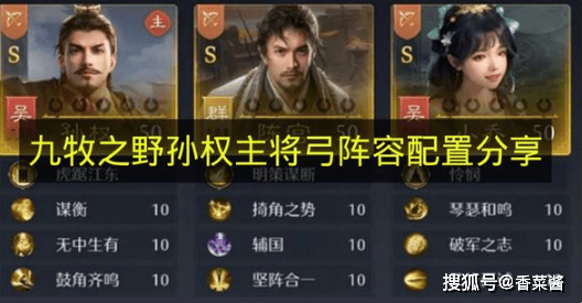 在《九牧之野》这款游戏中,玩家们可以自由地搭配各式各样的流派阵容,大部分的玩家都好奇孙权主将弓阵容应该怎么搭配,以下小编将会带来九牧之野孙权主将弓阵容配置分享的资讯,有感兴趣了解这个阵容的玩家可以过来做个参考吧。
