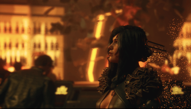 酒吧场景中,一位女子径直走过,其背后的粒子特效应该并非单纯装饰,结合赛博朋克题材常见设定,这很可能暗示她的黑客身份或是特殊身份;而酒吧深处 “旋风般的书页”,或许是某种设定伏笔。