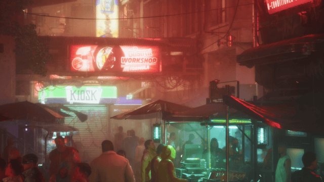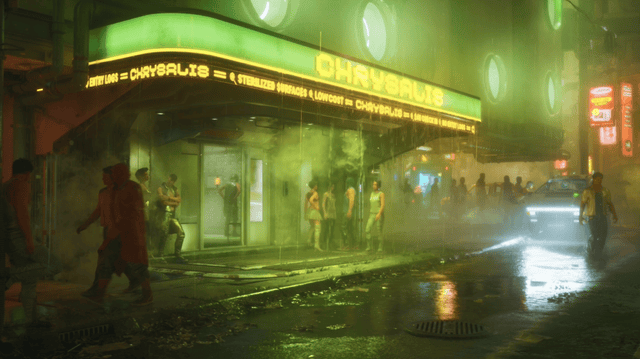 随着旁白响起,预告片为我们揭开了故事舞台:“欲望港”(Port Desire)。这是一处典型的 “无法之地”,各方势力盘根错节,秩序崩坏却暗藏生机。从预告画面中能清晰看到,在霓虹巨人手中霓虹灯光、连绵阴雨、破败街巷等经典赛博朋克视觉符号并未缺席。