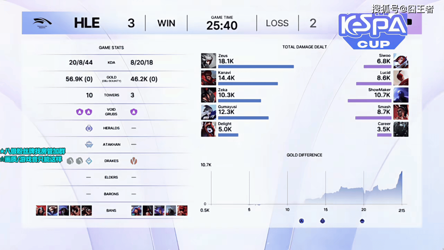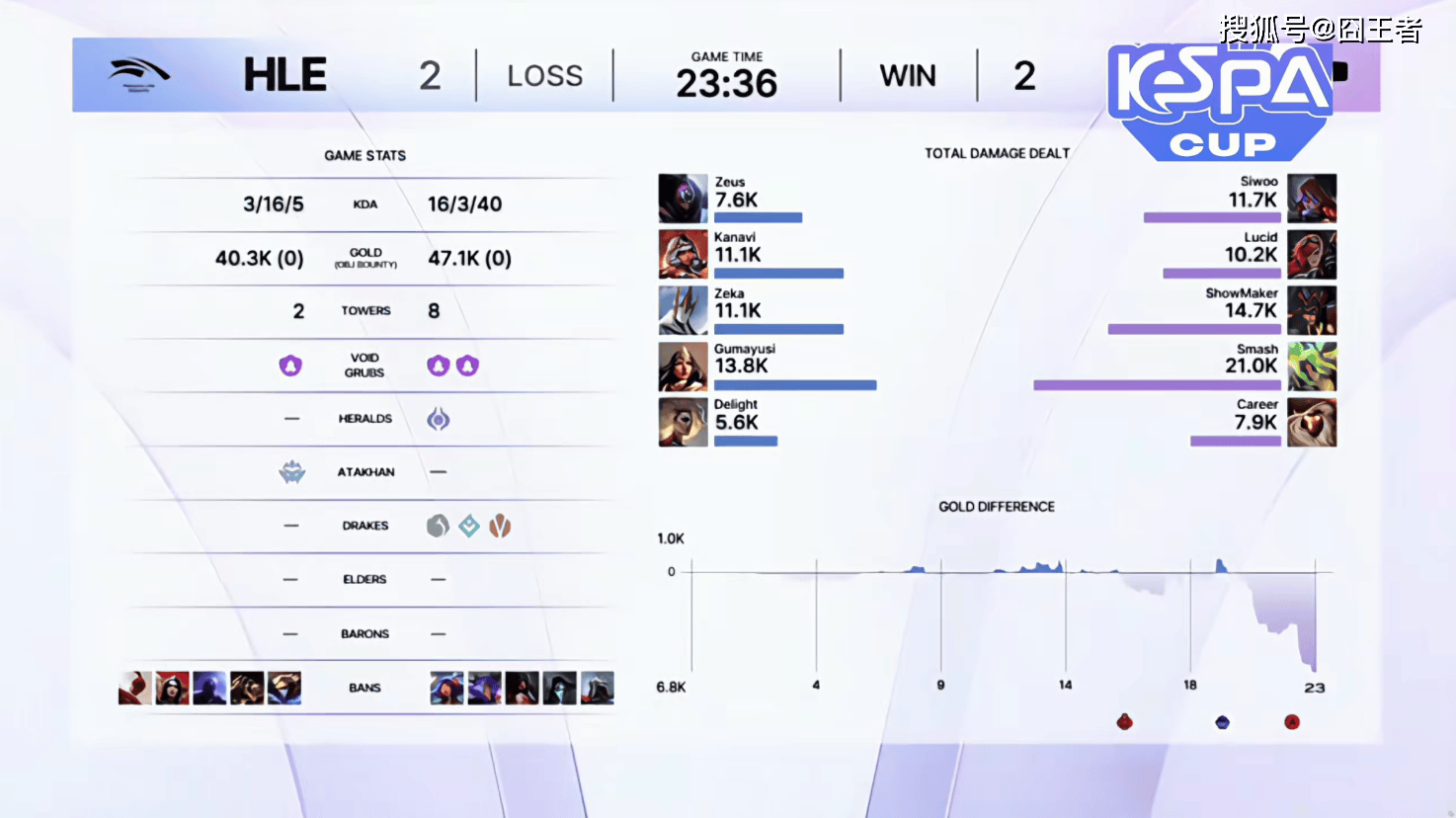 结果决胜局的比赛,变成了HLE的表演赛。比赛前期,HLE取得明显优势,比赛第16分钟左右,HLE取得4000的经济领先;比赛第23分钟左右,两队爆发激战,HLE打出3换3后进一步扩大优势;最终比赛第25分40秒,HLE一波打出0换5后结束比赛。