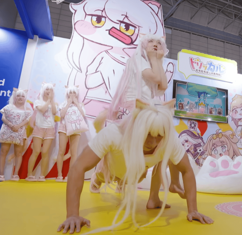 随后的TGS (东京电玩展)上,运营团队延续了这一思路,也整了一些新活,让现场多了些「搞笑漫」的质感。