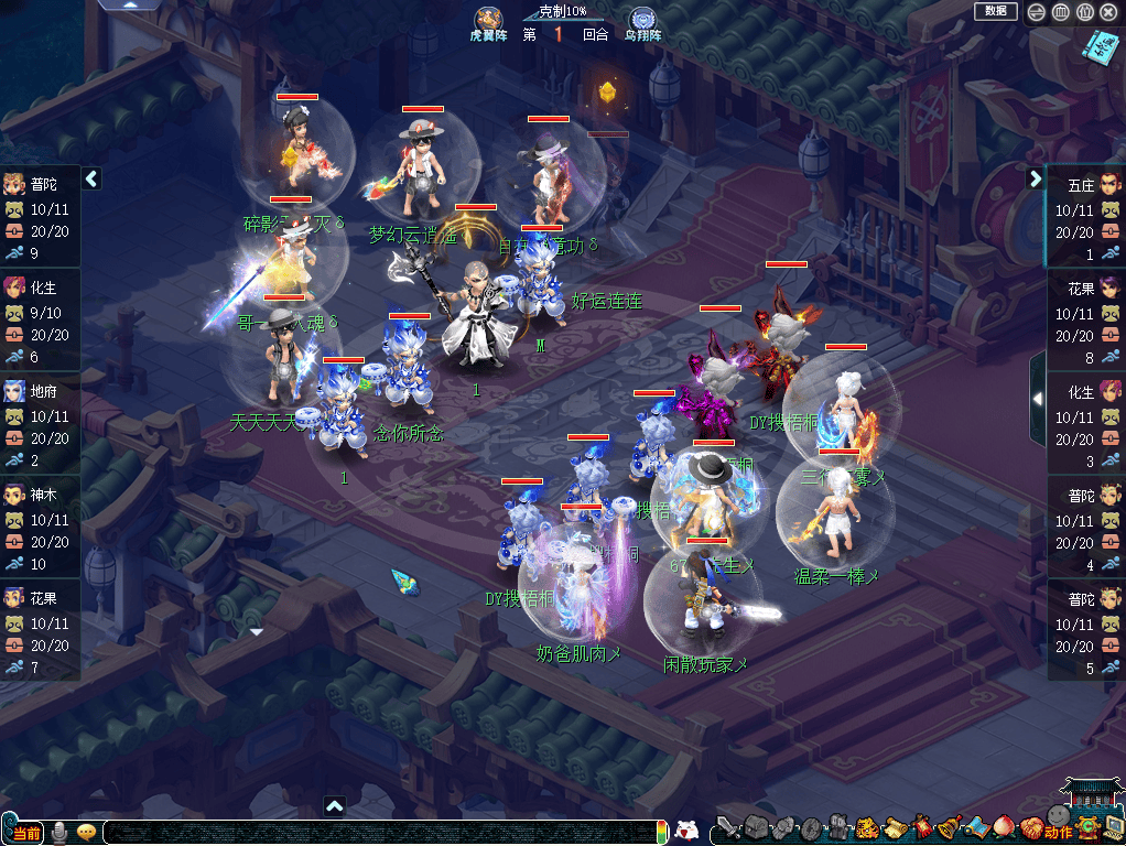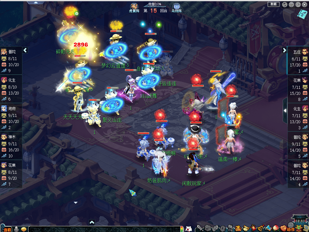 从出战阵容来看,钓鱼岛选用了“五庄、花果、双咒师、化生”组成的三攻体系,这套阵容的好处在于抗性强、单点爆发高,曲阜孔庙则是选用了“力普陀、花果山、神木林、化生、地府”组成的三攻体系,这套阵容的好处在于面伤足、点杀强。