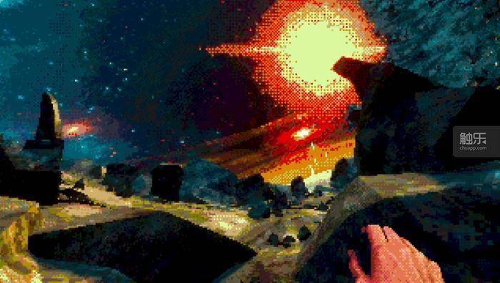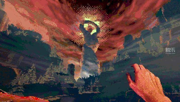 流程中,主角的手拥有3种超能力形态。这些形态都与主角的回忆有关,每次使用它们与场景进行互动,都会推进游戏进程。此外,游戏场景的每个视觉符号都有其独特的含义。比如山谷中诡异的“圣女”雕像、与主角的超能力有关的“眼与手”壁画等等。所有诡异的符号都被严丝合缝地织入了游戏的体验与内核,它们都能勾起玩家的好奇心,让玩家去挖掘这款游戏真正的故事。