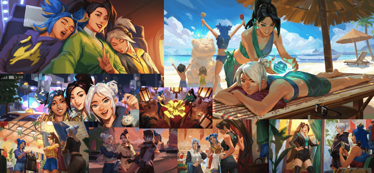 早在《英雄联盟》时期,Riot就凭借这种风格火爆全球,充分证明了其在市场上的可行性。而游戏的CG微电影采用了与《双城之战》一脉相承的三渲二动画风格,兼具手绘质感与立体动感;历年世界赛主题曲则多以2D动画短片呈现,叙事流畅、场景切换自如,极具张力。其中,2023年的世界赛主题曲《流光似箭》,更是被不少玩家奉为近些年最优秀的游戏音乐MV作品。