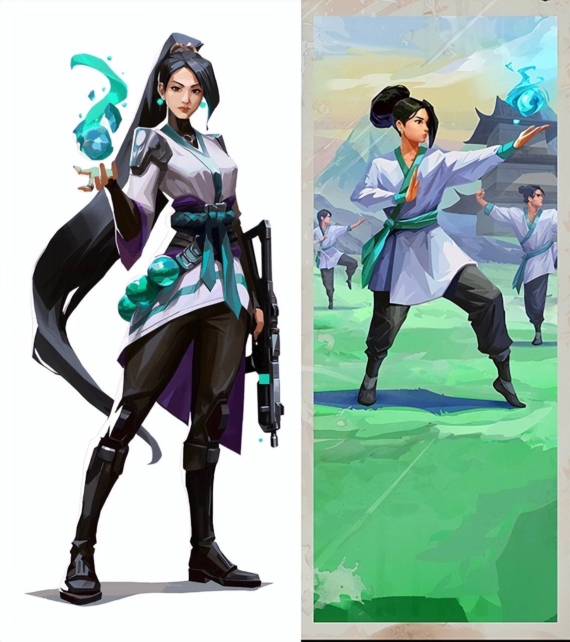在背景设定中,贤者曾在道观静修多年,其服饰自然从道家练功服中汲取灵感。但传统练功服下摆过长,不利于实战机动,于是设计师将其改良为短裙样式,既保留了东方气韵,又贴合战术需求。