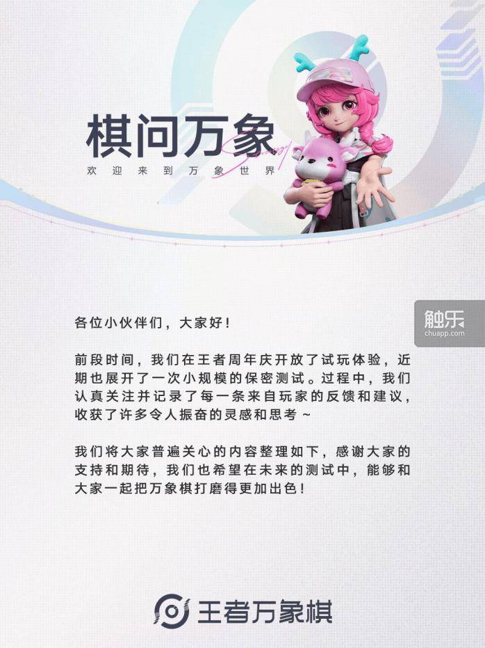 首先是标志性栏目《棋问万象》将全面升级转型为视频日志形式,以更生动、真实的方式,同步开发进展、解读设计逻辑,并对玩家反馈给予更直接、透明的回应。