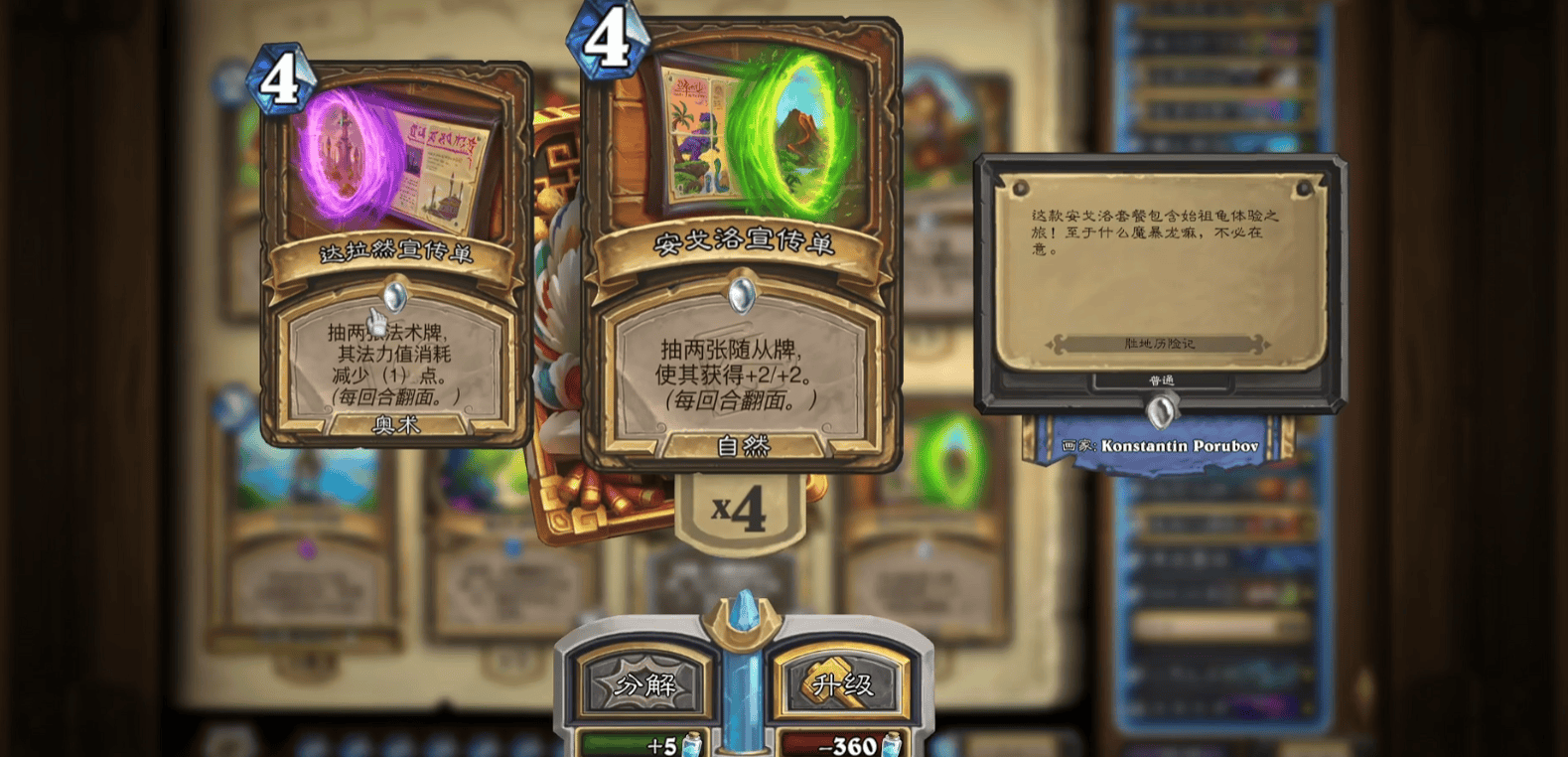 首先是经过改良后的任务防战,在这套卡组里,我们会选择带满所有的过牌,自助大餐和宣传单可以帮助你抽法术,在牌库过空的情况下,然后开任务抽法术,基本上必过到开门。再加上“抱石伙伴”能助你尽快地卸牌,打出9+开门就稳了,在打对方叠甲职业十分好用。