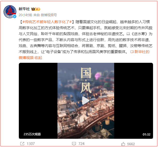 上市至今,《逆水寒》手游已经跟数十位非遗传承人展开合作,邀请他们加入游戏的研发中,通过监修,将醒狮、剪纸、簪花围等诸多非遗技艺植入游戏中。因为在数字化传播上的出色表现,它也多次被央视、新华社等媒体表扬,称其为传承和弘扬国风美学的重要载体。